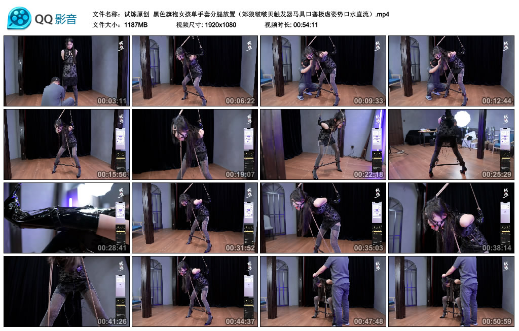 这部作品是试炼原创工作室定拍出品的,算是很优秀的作品了,演员非常不错,穿着漂亮的衣服,非常不错,配合的很好,时间的话不长,我已经发布了,喜欢的自己看,后面继续推荐黑色旗袍女孩单手套分腿放置(郊狼啵啵贝触发器马具口塞极虐姿势口水直.的作品,谢谢大家了。